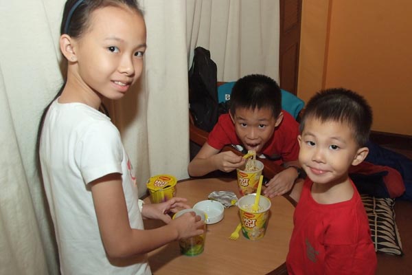 Supper was cup-noodles! We brought enough to share with some friends (the children brought friends to our room or visited their friends, too)