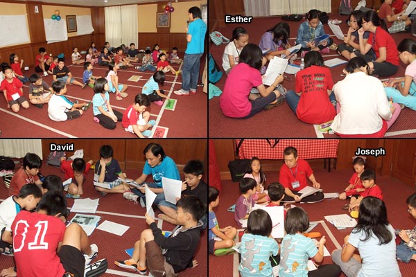 The children had their own classes conducted by Scripture Union. Joseph is too old to be with toddlers, but too young to be with the Primary school children, so the older children helped him with reading and writing during class.
