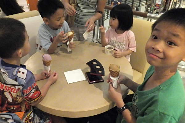 We then went to Paradigm mall for dinner with cousin Yin, and her children Yen and Yu. We ate very tasty noodles at Paradise Dynasty and then had Hokkaido ice-cream.