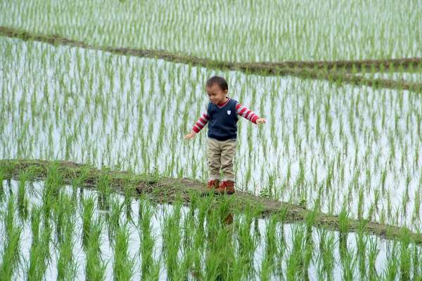 Esther, David and Samuel went out to the paddy fields, while Joseph rested (flu starting).