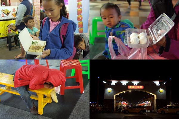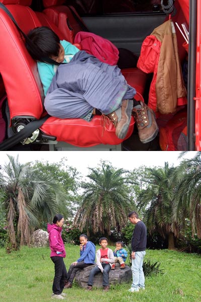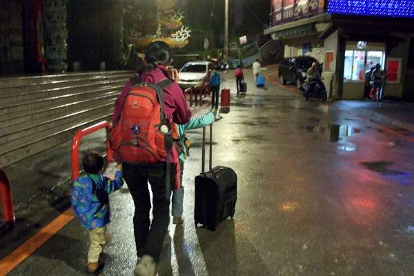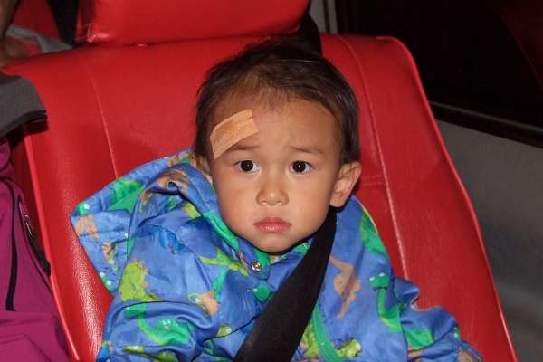 Then we stopped at Shiding at 8.35pm for a toilet break, and Samuel tumbled down some steps, and we had to use first-aid to patch him up.