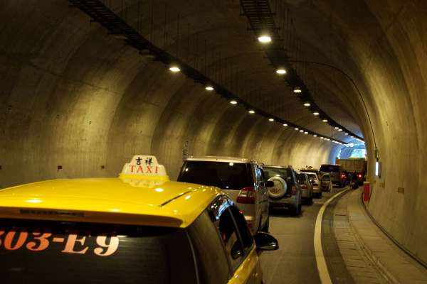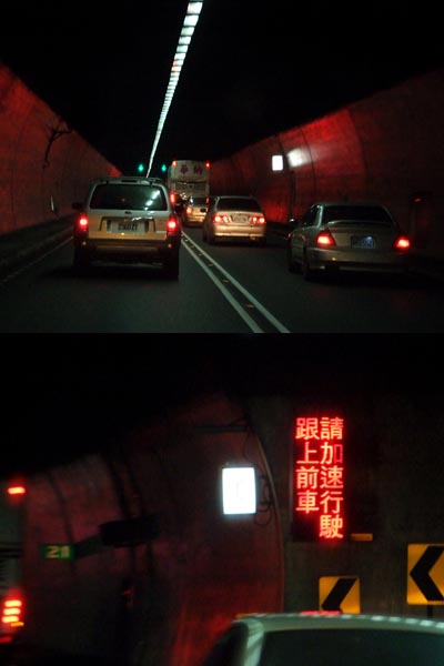 In the long 13km tunnel, there were annoucements and signs to tell drivers not to slow down!